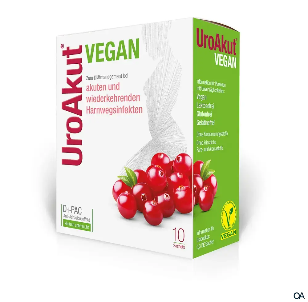 - Information für Personen mit Unverträglichkeiten: Das Produkt ist frei von tierischen Inhaltsstoffen und als vegan laut Veganer Gesellschaft Österreich eingestuft. UroAkut® vegan Granulat enthält keine Rohstoffe, die aus Getreide gewonnen werden, und ist somit für eine glutenfreie Ernährung geeignet. Weiters sind alle Zutaten frei von Milchbestandteilen, und somit ist UroAkut® vegan Granulat laktosefrei. Das Produkt enthält keine Konservierungsstoffe.