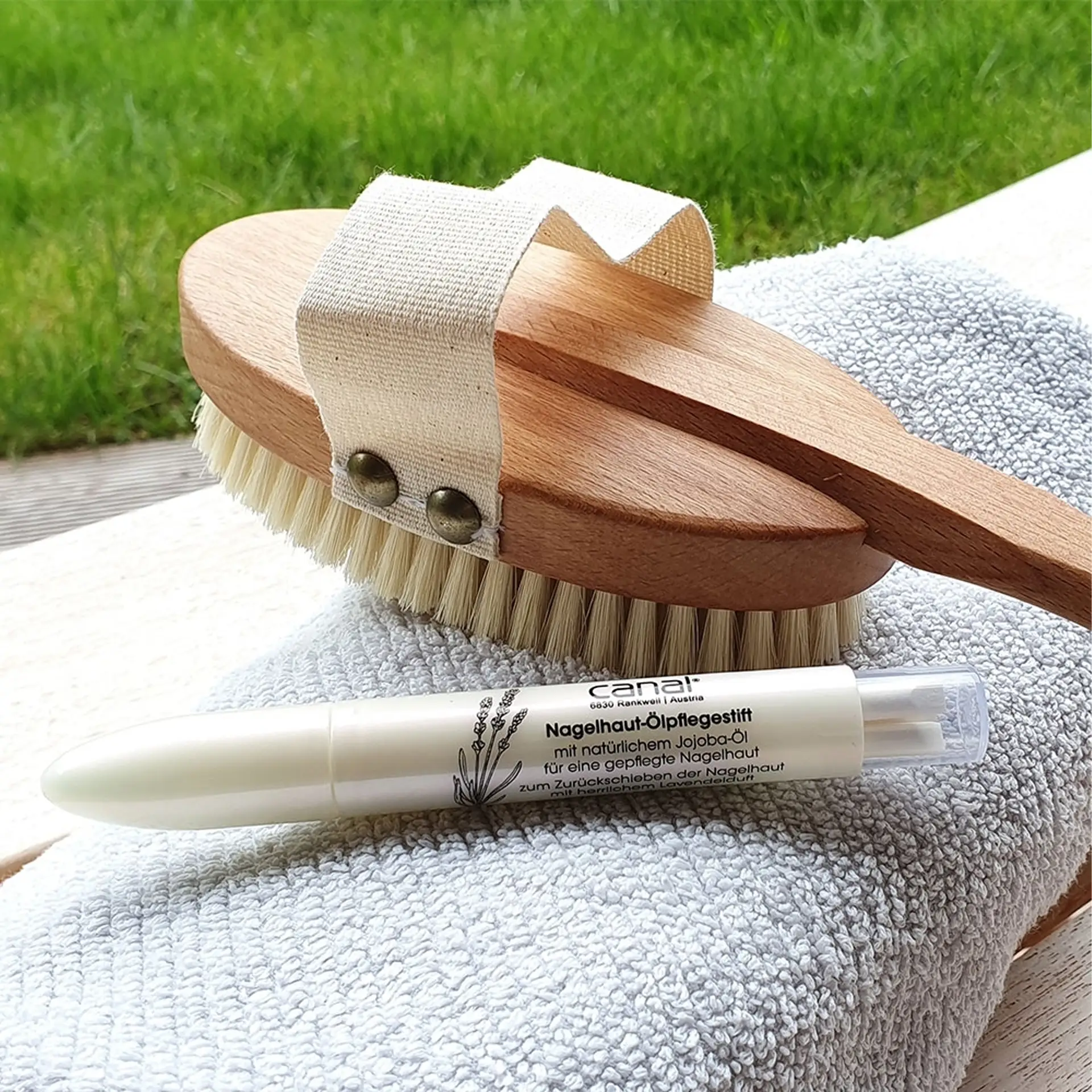 Erleben Sie eine wohltuende Massage mit der Canal Badebürste. Die mittelfeinen Naturborsten regen die Durchblutung an und pflegen Ihre Haut sanft. Der abnehmbare Griff aus geöltem Buchenholz ermöglicht eine bequeme Anwendung.Canal Badebürste – Natürliche Wellnesspflege für Ihre Haut