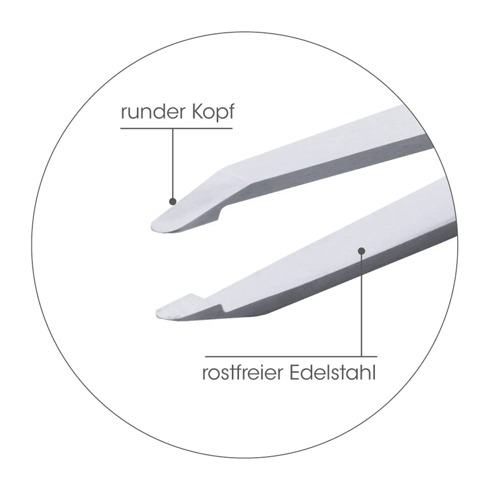 Die rostfreie Edelstahlkonstruktion sorgt dafür, dass die Pinzette hygienisch bleibt und für empfindliche Haut geeignet ist. Sie ist langlebig und einfach zu reinigen.