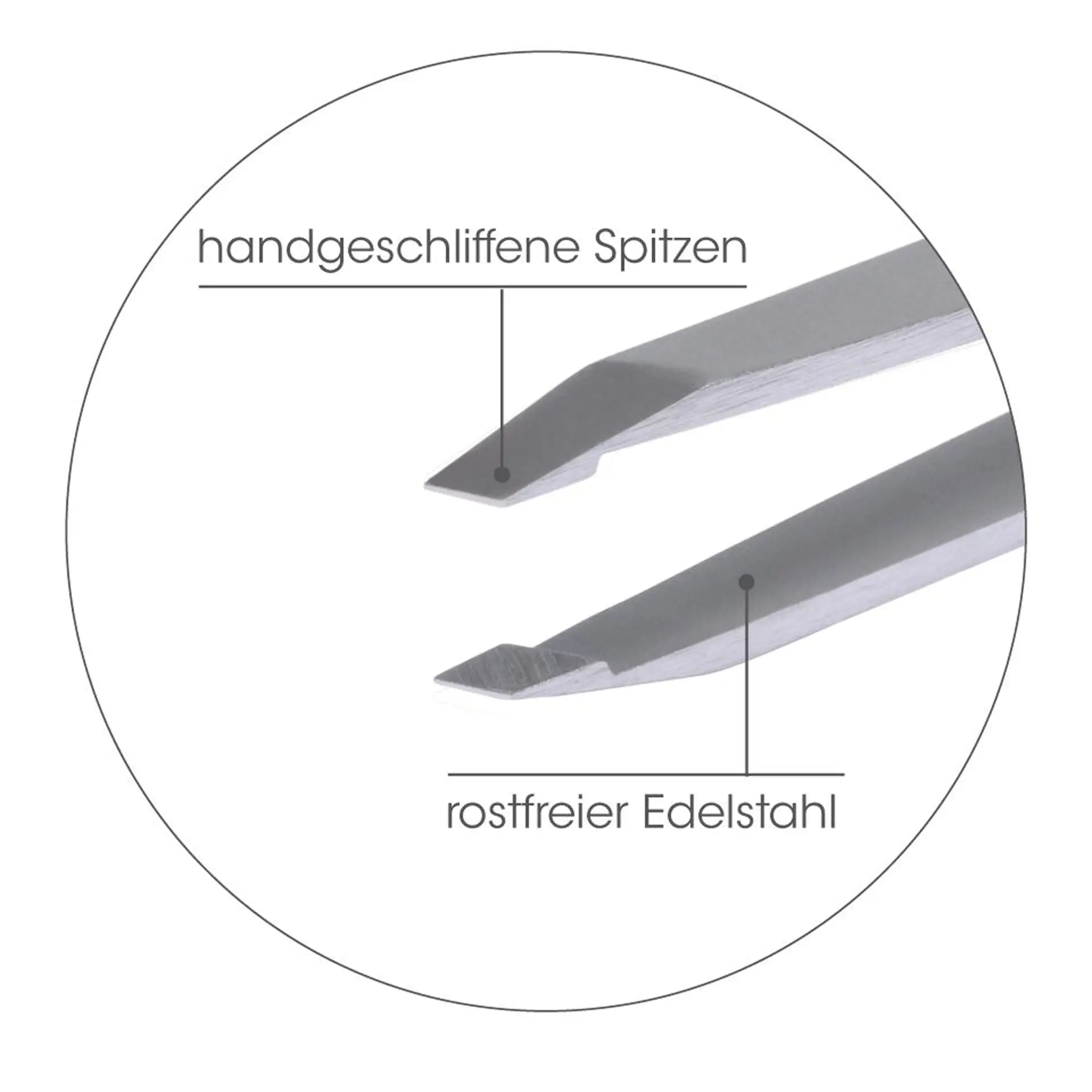 Jede Canal® Haarpinzette wird von Hand geschliffen und zeichnet sich durch feinste Spitzen und genau aufeinander abgestimmte Greifflächen aus. Die perfekte Pinzette öffnet sich beim Zusammendrücken nicht und entfernt jedes Haar präzise. Zum Formen der Augenbrauen einfach die Pinzette schräg zur Hautoberfläche halten. Alle rostfreien canal Pinzetten sind nachschleifbar – umweltfreundlich, nachhaltig und garantierte lebenslange Freude.