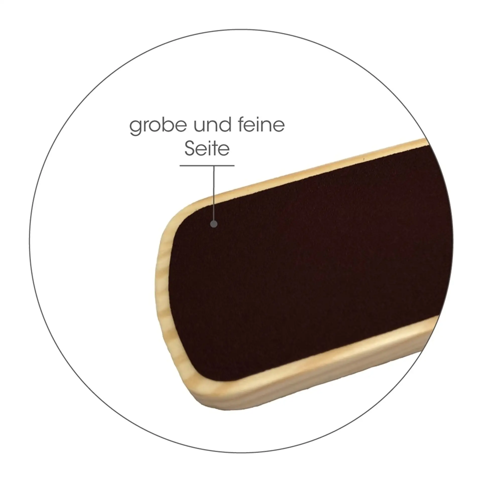 Die Feile besteht aus hochwertigem Kiefernholz, das nicht nur besonders robust ist, sondern auch angenehm in der Hand liegt. So können Sie sicherstellen, dass Ihre Fußpflege sowohl effektiv als auch komfortabel ist.
