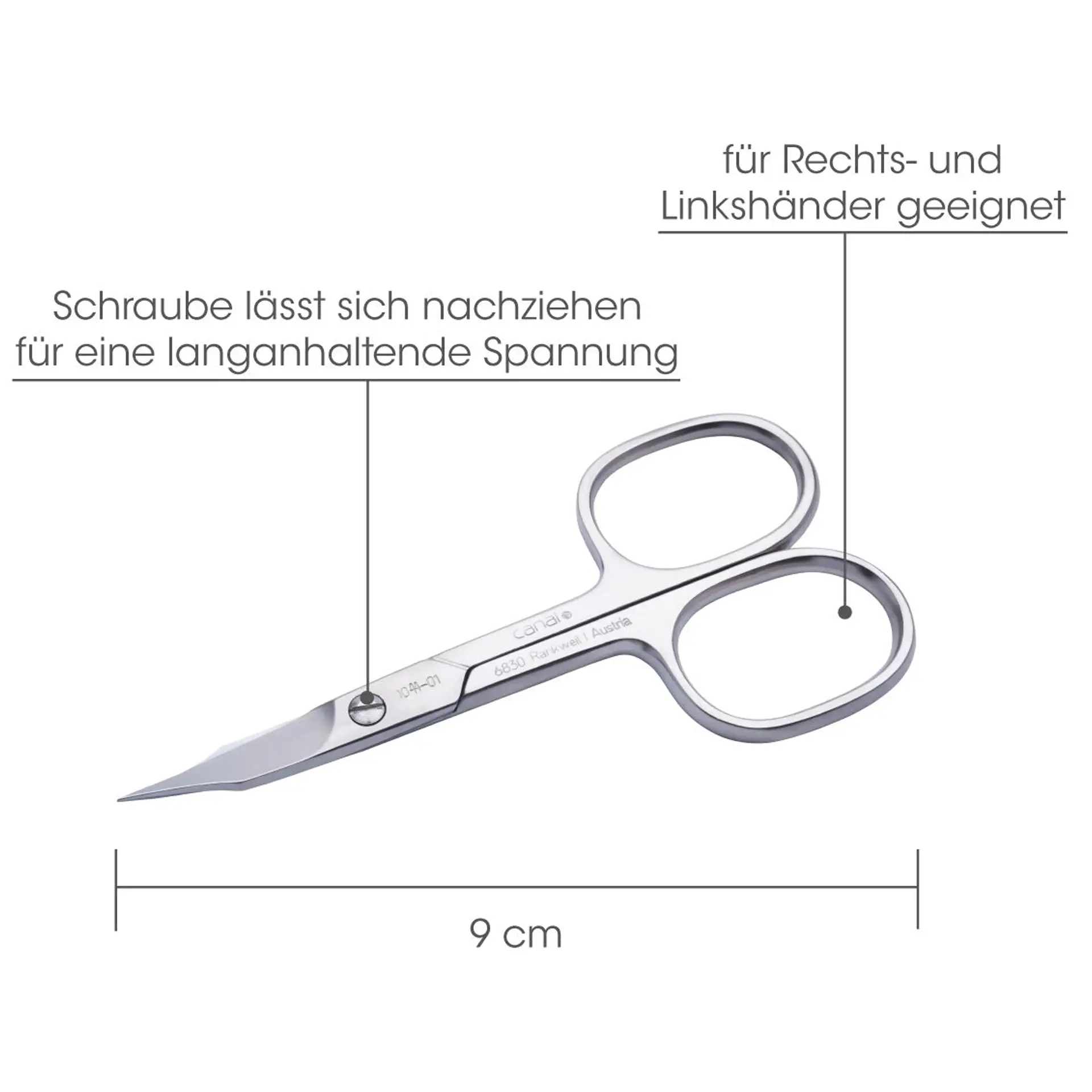 Die Canal® Nagelschere sorgt für einen glatten, sauberen Schnitt ohne Ausfransen der Nägel. Sie entfernt überschüssige Nagelhaut mühelos und ist ideal für eine präzise Nagelpflege. Dank der feinen, handgeschliffenen Spitzen können Nägel durchgängig geschnitten werden, was die Nagelgesundheit fördert und starke, gesunde Nägel garantiert. Sie ist besonders für Linkshänder geeignet und liegt angenehm in der Hand.