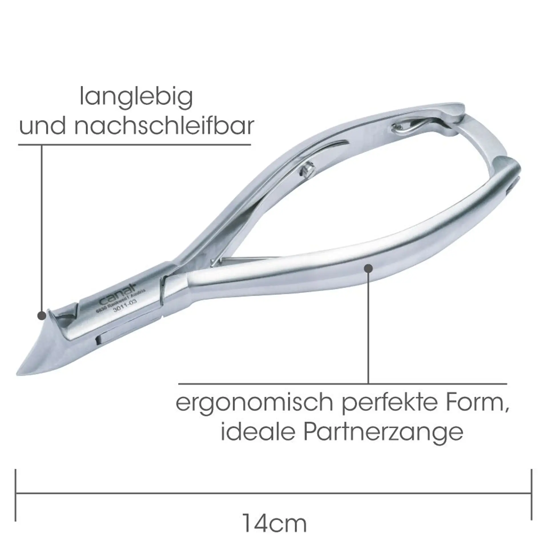 Erleben Sie mit der canal Zange höchste Präzision, Komfort und Langlebigkeit. Ein ideales Werkzeug für Ihre Nagelpflege, das sowohl funktional als auch nachhaltig ist.