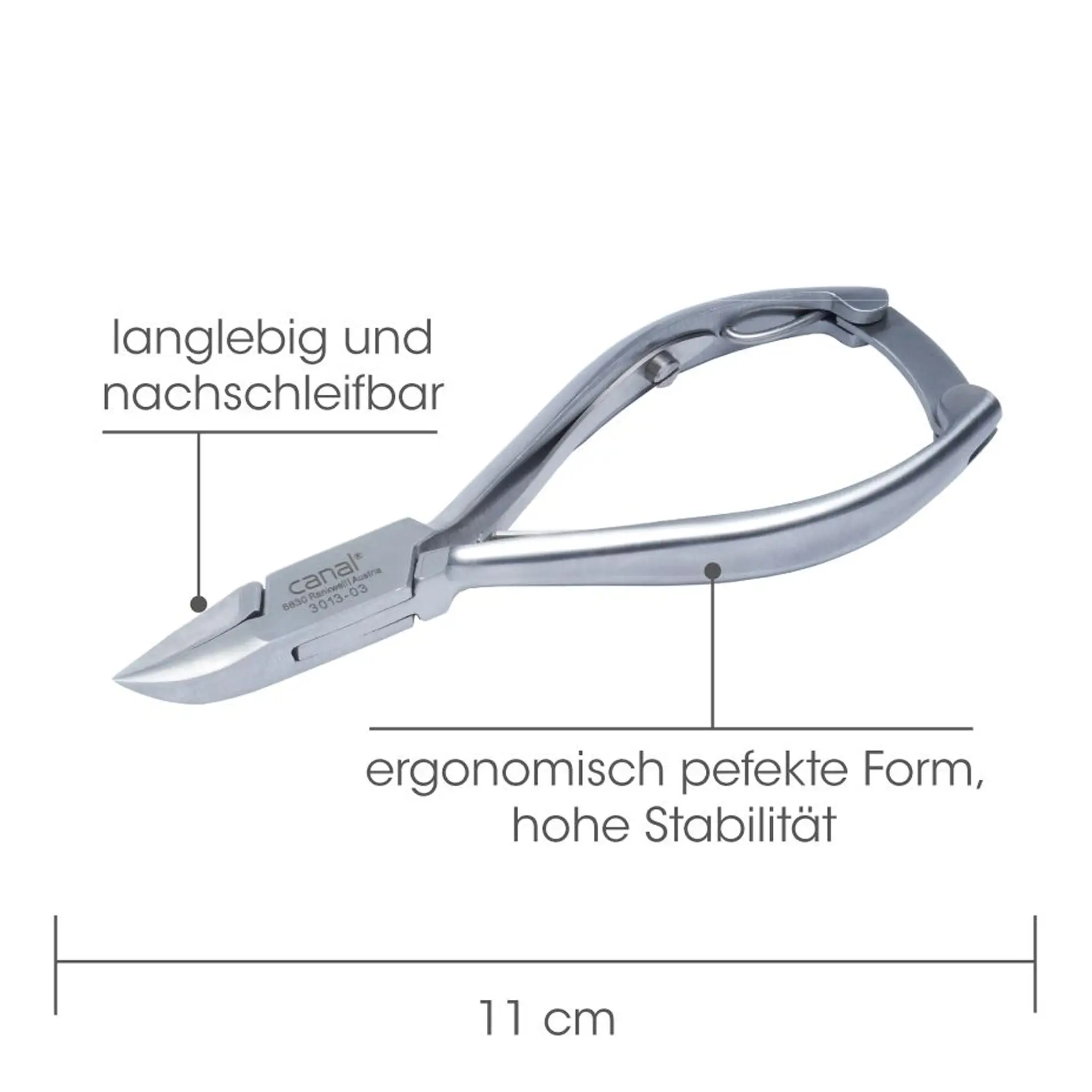 Erleben Sie mit der canal Nagelzange höchste Präzision, Langlebigkeit und Komfort. Ein ideales Werkzeug für exakte und mühelose Nagelpflege – immer wieder neu geschärft und bereit für den Einsatz.