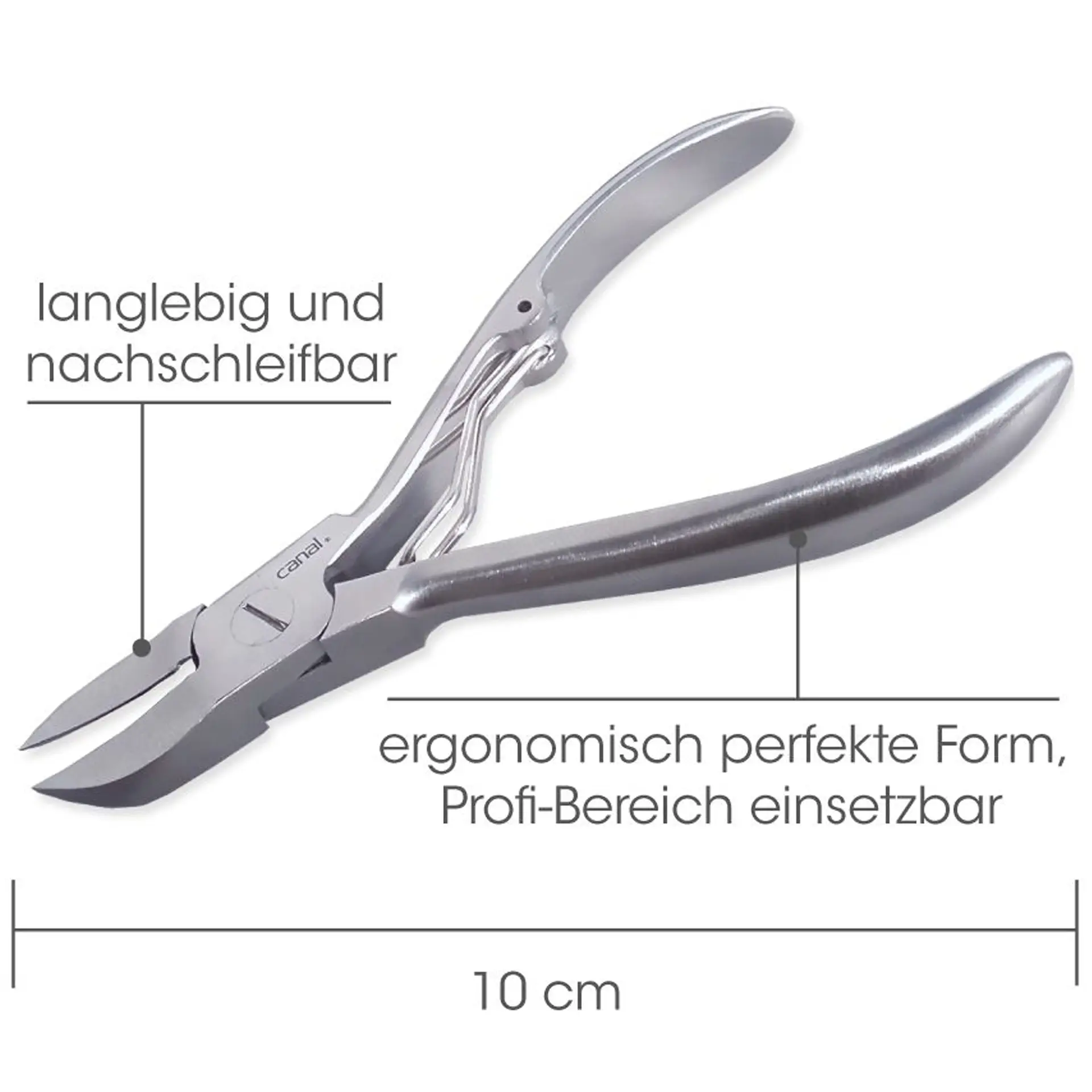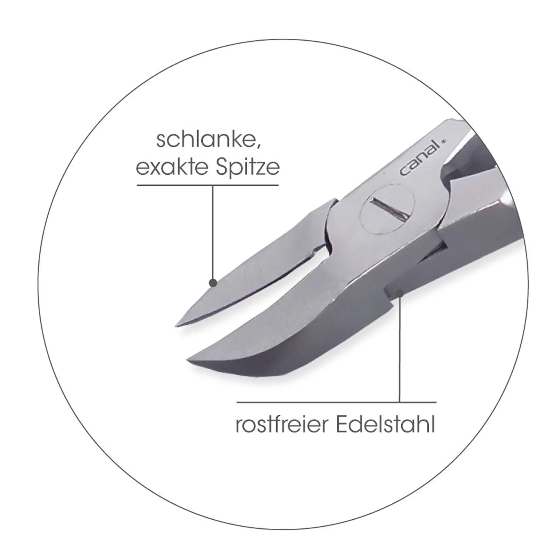 Erleben Sie höchste Präzision, Komfort und Langlebigkeit mit der canal Nagelzange – für eine mühelose, exakte Nagelpflege, die immer wieder neu geschärft werden kann.