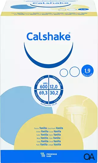 Wohlschmeckende Trinknahrung in Pulverform für Milchmischgetränke. Wenn Sie neben Ihrer täglichen Nahrung zusätzlichen Energiebedarf haben, verwenden Sie Calshake® für energiereiche Milchshakes. Zum Diätmanagement bei Patienten mit bestehender ...Wohlschmeckende Trinknahrung in Pulverform für Milchmischgetränke. Wenn Sie neben Ihrer täglichen Nahrung zusätzlichen Energiebedarf haben, verwenden Sie Calshake® für energiereiche Milchshakes. Zum Diätmanagement bei Patienten mit bestehender oder drohender Mangelernährung, insbesondere bei erhöhtem Energiebedarf.