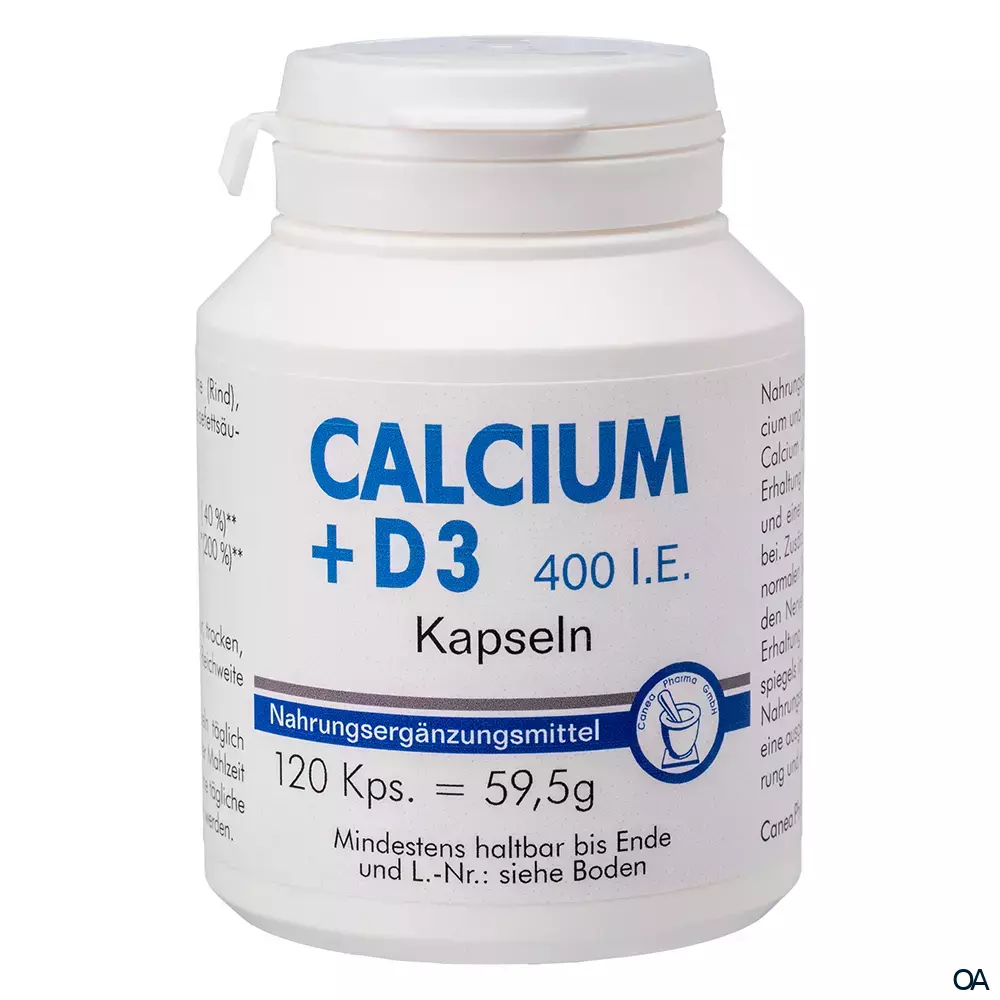 - Zutaten: Calciumcarbonat, Gelatine (Rind), Trennmittel Magnesiumsalze der Speisefettsäuren, Cholecalciferol, Farbstoff E171.