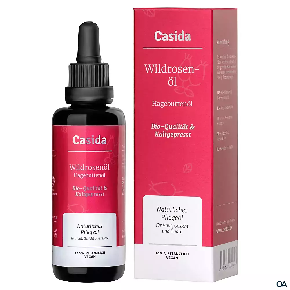 Casida Wildrosenöl ist ein natürliches Pflegeöl für Haut, Gesicht und Haare - reich an Vitamin C und A. Ideal zur Anwendung bei Falten oder auch bei Rosazea und Ekzemen.Casida Wildrosenöl ist ein natürliches Pflegeöl für Haut, Gesicht und Haare - reich an Vitamin C und A. Ideal zur Anwendung bei Falten oder auch bei Rosazea und Ekzemen.