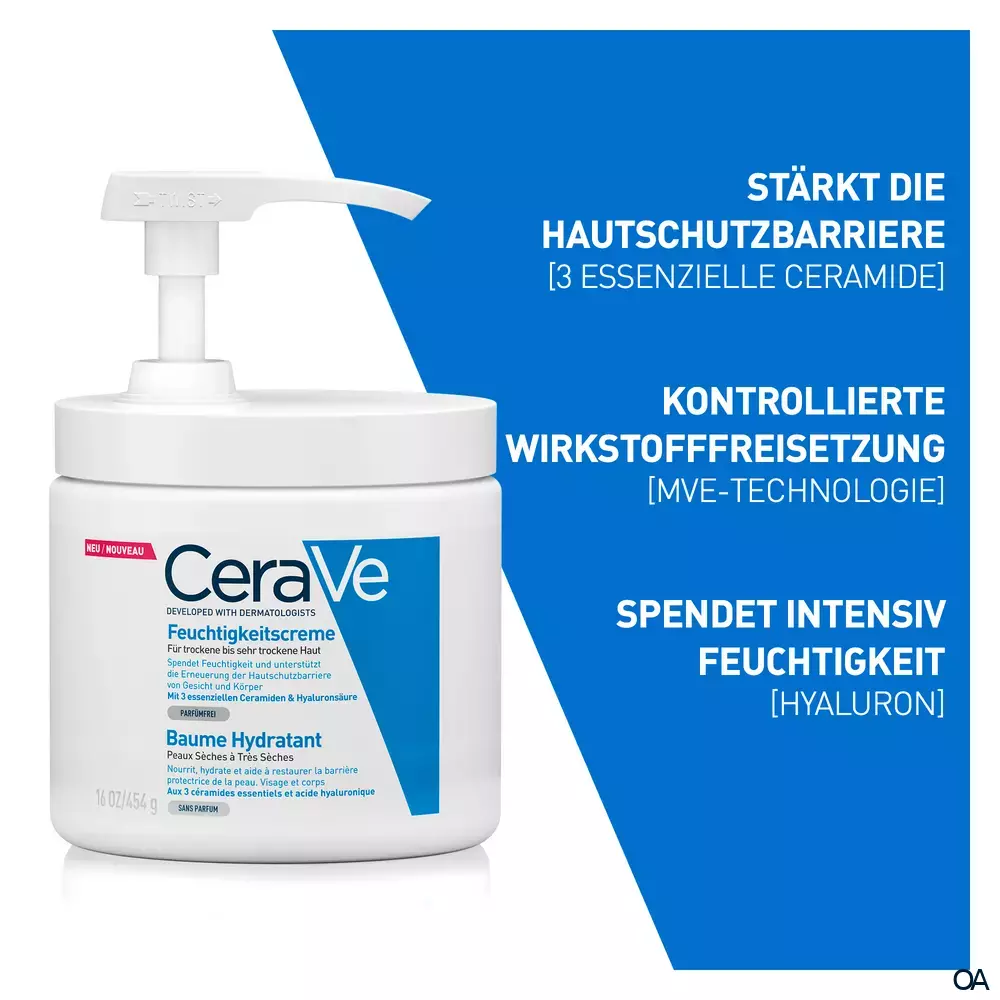 CeraVe Feuchtigkeitscreme - Für empfindliche, trockene bis sehr trockene Haut, mit 3 essenziellen Ceramiden und Hyaluron. Spendet Feuchtigkeit und unterstützt die Erneuerung der Hautschutzbarriere von Gesicht und Körper.CeraVe Feuchtigkeitscreme - Für empfindliche, trockene bis sehr trockene Haut, mit 3 essenziellen Ceramiden und Hyaluron. Spendet Feuchtigkeit und unterstützt die Erneuerung der Hautschutzbarriere von Gesicht und Körper.