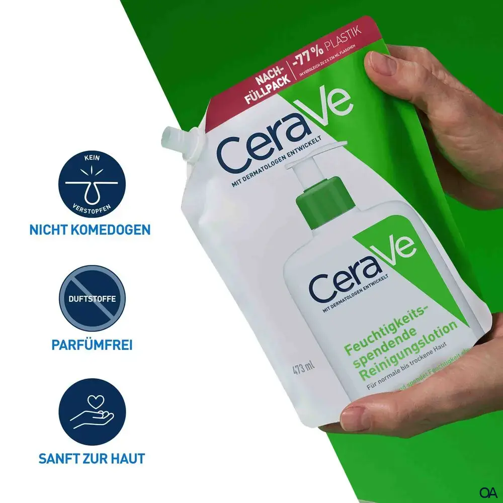 Die CeraVe Feuchtigkeitsspendende Reinigungslotion ist eine milde einigungslotion für Gesicht und Körper, die Schmutz und Fett sanft entfernt und gleichzeitig die Hautfeuchtigkeit erhält und die Hautschutzbarriere stärkt. Nicht schäumende Formel.