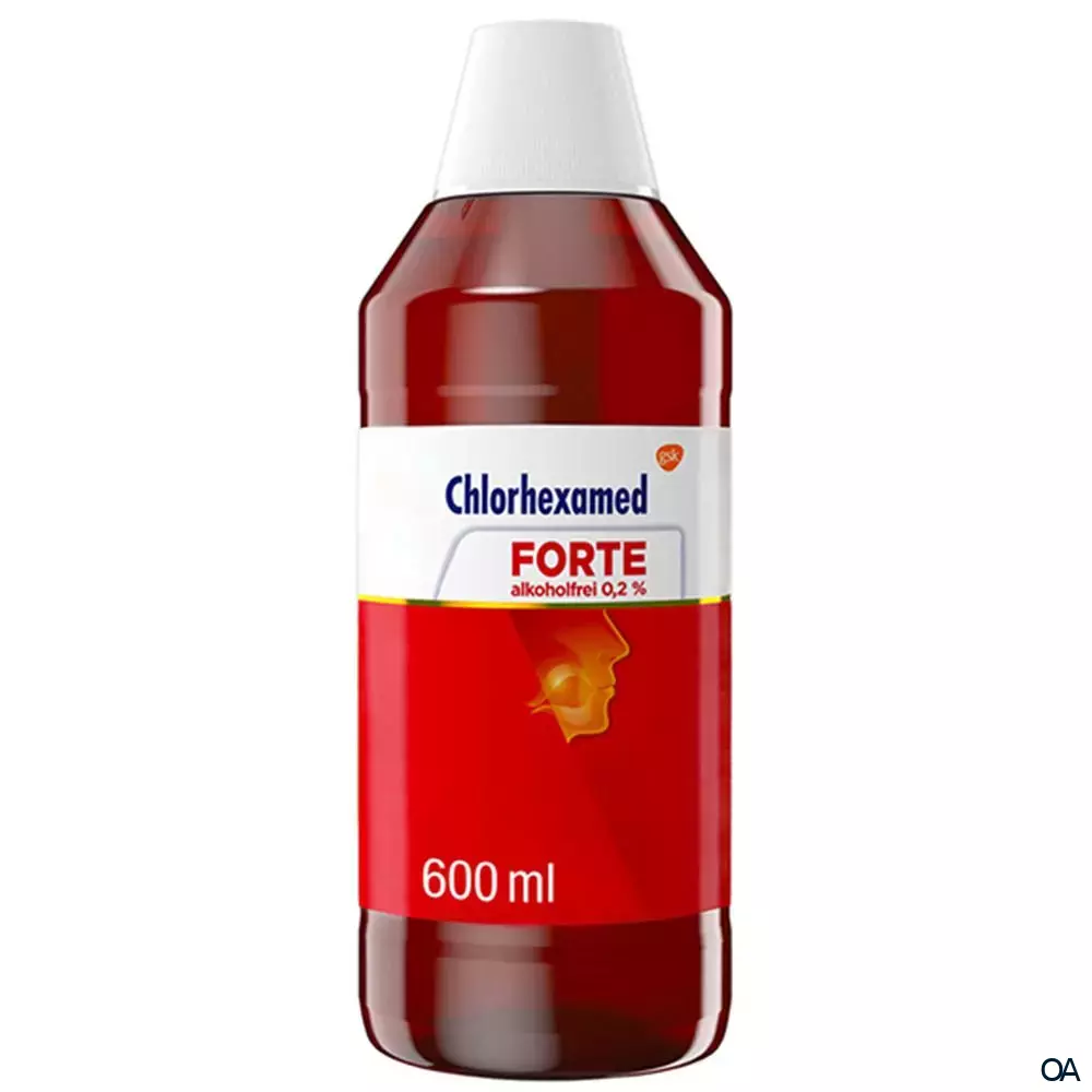 Chlorhexamed® Forte Dentallösung ist ein oberflächenaktives Mund- und Rachen-Antiseptikum (Desinfektionsmittel) mit breitem Wirkungsspektrum und Langzeitwirkung gegen bakterielle Erreger und einer etwas schwächeren Aktivität gegen Pilzerkrankungen.Chlorhexamed® Forte Dentallösung ist ein oberflächenaktives Mund- und Rachen-Antiseptikum (Desinfektionsmittel) mit breitem Wirkungsspektrum und Langzeitwirkung gegen bakterielle Erreger und einer etwas schwächeren Aktivität gegen Pilzerkrankungen.