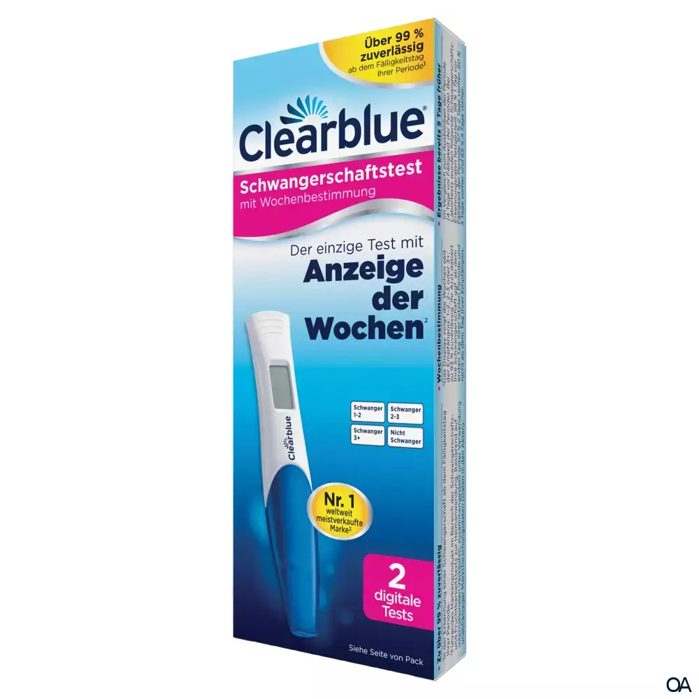 Der neue Clearblue Schwangerschaftstest mit Wochenbestimmung. Eine bestehende Schwangerschaft wird ab dem Fälligkeitstag der Periode zu mehr als 99 % richtig erkannt.Der Clearblue Schwangerschaftstest mit Wochenbestimmung ist der bisher einzige Test, der bei der Bestimmung der Schwangerschaftswoche genauso zuverlässig ist wie eine Ultraschalluntersuchung. Der Smart Dual Sensor™ zeigt Ihnen nicht nur in Textform an, ob Sie schwanger sind oder nicht, sondern nennt auch die Schwangerschaftswoche.
