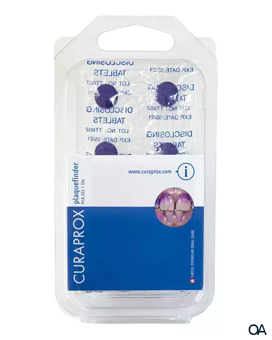 Curaprox Plaque-Anfärbe-Tabletten sind wertvolle Helfer mit Erfolgsgarantie. Sie zeigen Plaquestellen im Mund an, und es wir deutlich ersichtlich, wo nachgeputzt werden sollte. Ein Zusatzeffekt: Plaquefinder motiviert: Zu sehen, wie die Plaque weniger wird, ist die schönste Belohnung.