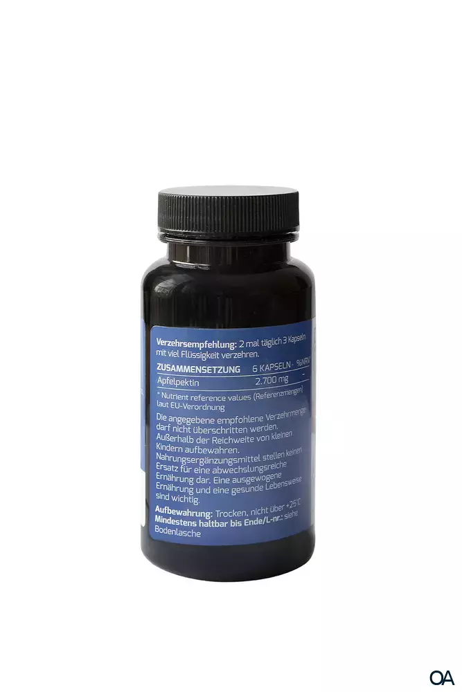 - Nährstoffe pro Tagesdosis (= 6 Kapseln): Apfelpektin 2700 mg
