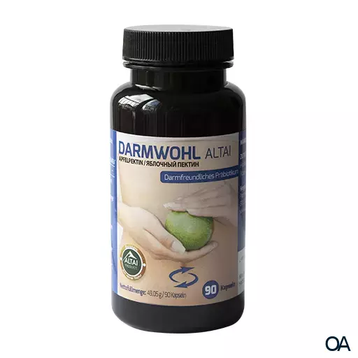 Darmwohl Kapseln Altai ist ein Nahrungsergänzungsmittel mit dem Ballaststoff Pektin. Dieses bindet Wasser und ist daher bei Durchfall geeignet. Außerdem tragen Pektine zur Aufrechterhaltung eines normalen Cholesterinspiegels im Blut bei.