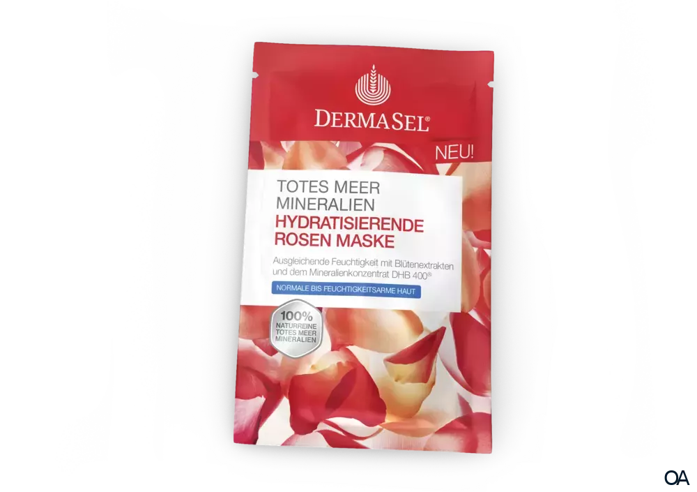 Die DermaSel® Totes Meer Mineralien Hydratisierende Rosen Maske mit ausgesuchten Rosenessenzen, Süßholzextrakten und dem einzigartigen Totes Meer Mineralienkonzentrat DHB 400® in einer leichten Cremetextur, gleicht den Feuchtigkeitsgehalt der Haut aus. Eine gesunde, normale Haut verliert durch Umweltfaktoren und den natürlichen Alterungsprozess an Feuchtigkeit und damit an Spannkraft. Durch die Maske wird die Hautschutzbarriere gestärkt und die Haut vor Reizungen und trockenheitsbedingter Faltenbildung geschützt. Der Duft von zarter Rose verwöhnt zudem Körper und Seele.