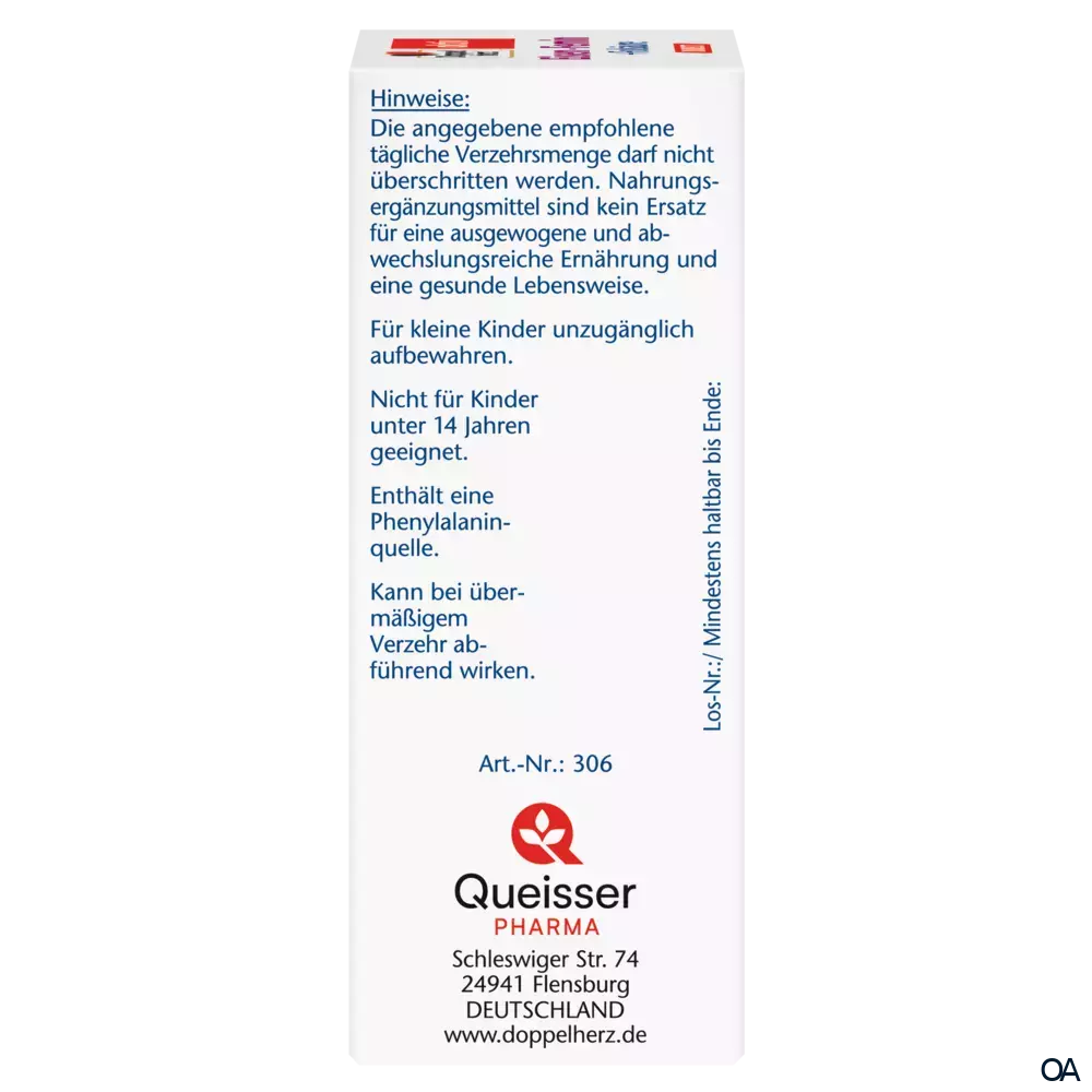 Doppelherz Eisen-Femin DIRECT enthält neben 14 mg Eisen eine Kombination aus Folsäure, Vitamin B6, B12 und Vitamin C.