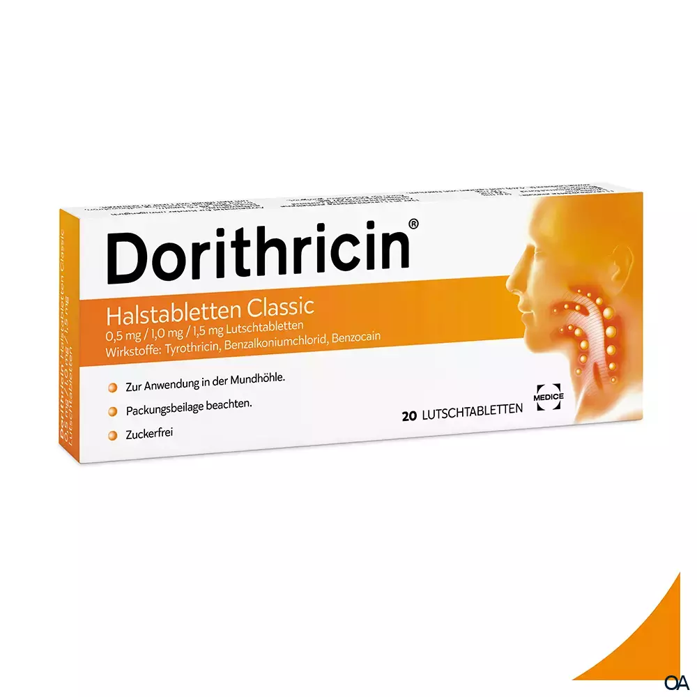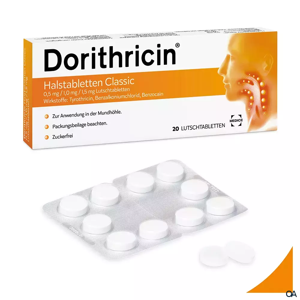 Dorithricin® Halstabletten Classic enthalten als Mittel zur oberflächlichen Betäubung Benzocain sowie die keimhemmenden und keimtötenden Substanzen Tyrothricin und Benzalkoniumchlorid. Aufgrund dieser Wirkstoffkombination wird dieses Arzneimittel als Mund- und Rachentherapeutikum eingesetzt.