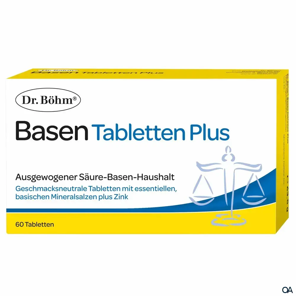Dr. Böhm® Basen Plus Tabletten sind ein Nahrungsergänzungsmittel zur Unterstützung für einen ausgewogenen Säure-Basen-Haushalt! Geschmacksneutrale Tabletten mit allen essentiellen Mineralstoffen.Dr. Böhm® Basen Plus Tabletten sind ein Nahrungsergänzungsmittel zur Unterstützung für einen ausgewogenen Säure-Basen-Haushalt! Geschmacksneutrale Tabletten mit allen essentiellen Mineralstoffen.