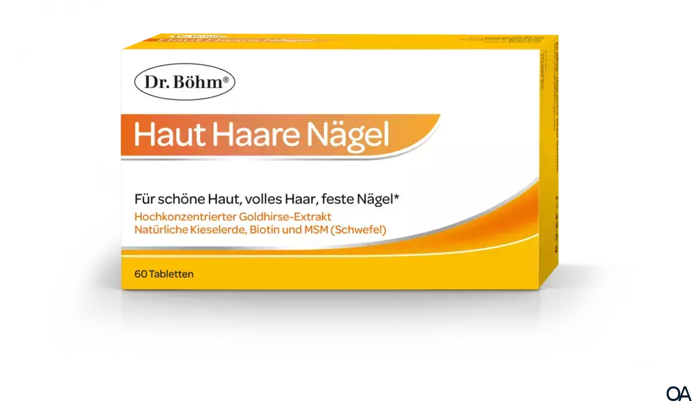 Dr. Böhm® Haut Haare Nägel Tabletten für eine natürliche Schönheit von innen! Mit hochkonzentriertem Goldhirse-Extrakt plus natürlicher Kieselerde, Biotin und MSM (Schwefel).Dr. Böhm® Haut Haare Nägel Tabletten für eine natürliche Schönheit von innen! Mit hochkonzentriertem Goldhirse-Extrakt plus natürlicher Kieselerde, Biotin und MSM (Schwefel).