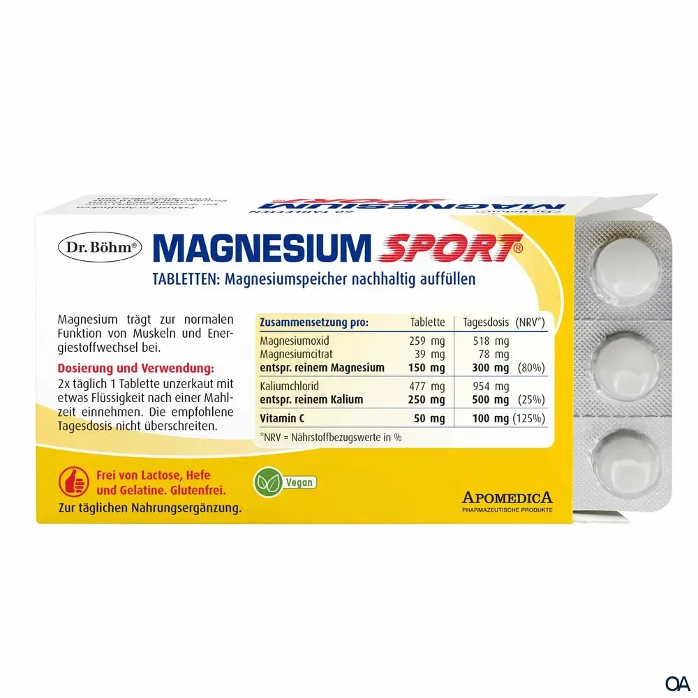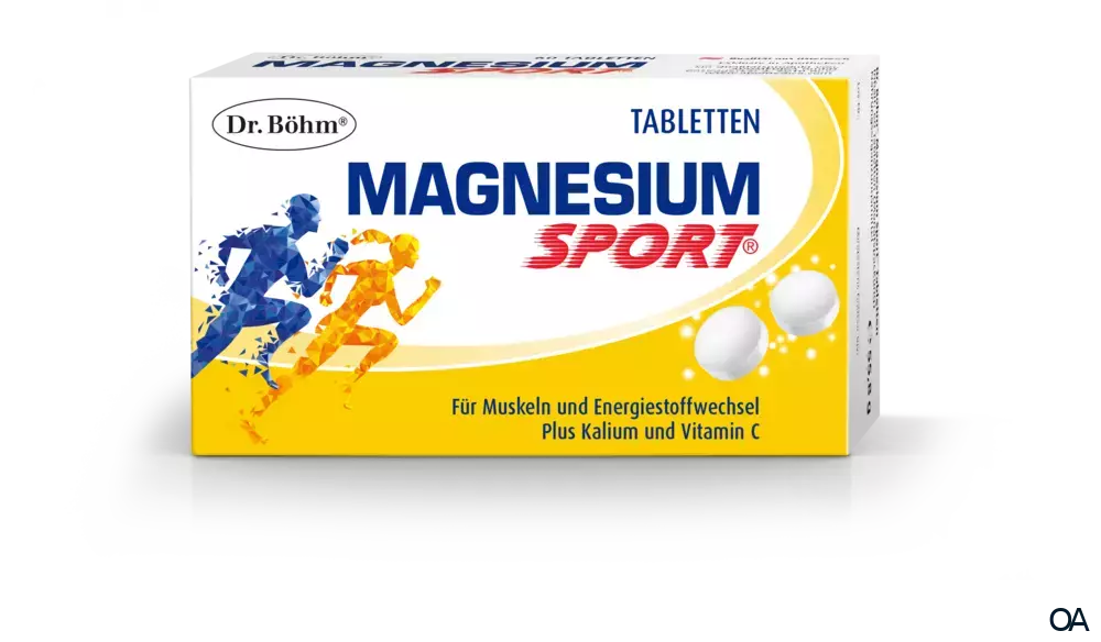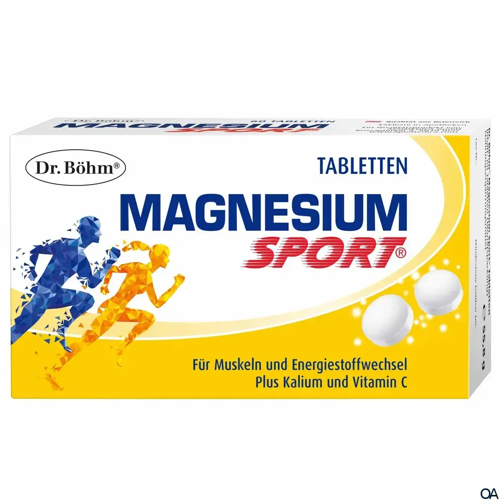 Dr. Böhm® Magnesium Sport® Tabletten sind ein Nahrungsergänzungsmittel - ideal für mehr Ausdauer und Leistung - füllt den Magnesiumspeicher nachhaltig auf. Für Muskeln und Energiestoffwechsel plus Kalium und Vitamin C.