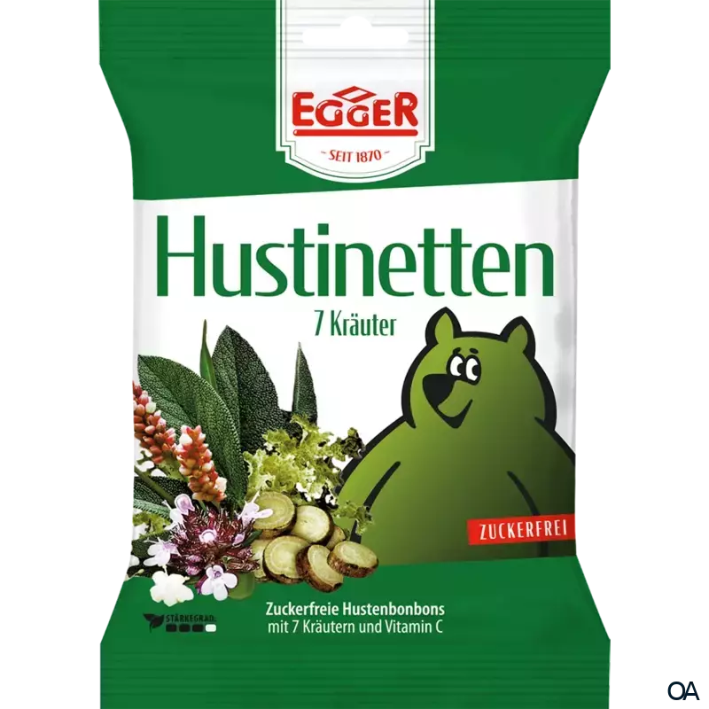 Egger Hustinetten 7 Kräuter sind zuckerfreie Hustenbonbons mit 7 ausgewählten Kräutern und Vitamin C.Egger Hustinetten 7 Kräuter sind zuckerfreie Hustenbonbons mit 7 ausgewählten Kräutern und Vitamin C.