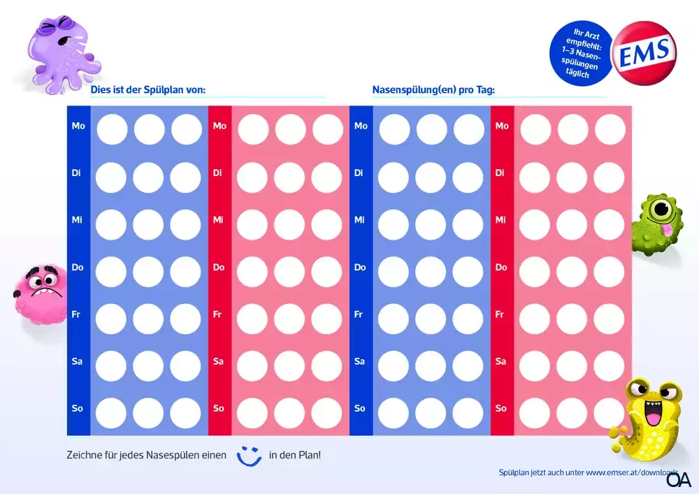 Die farbenfroh gestaltete Kindernasendusche Nasanita® wurde von Emser® speziell für die Durchführung von Nasenspülungen bei Kindern konzipiert. Mit der isotonen Emser Salz®-Lösung hilft das Naseduschen bei akuten und chronischen Infektionen der Nasenschleimhaut mit oder ohne Beteiligung der Nasennebenhöhlen. Da die Kindernasendusche an die kindliche Ergonomie angepasst ist, können die Kleinen ab einem Alter von etwa 3 Jahren damit ihre Nase eigenständig spülen – unter Aufsicht eines Erwachsenen.
