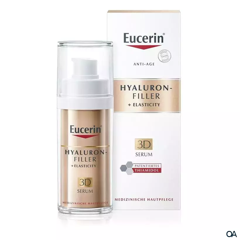 Eucerin Hyaluron-Filler + Elasticity 3D Serum mildert effektiv Altersflecken, füllt tiefe Falten sichtbar auf und verbessert die Elastizität. Die Haut wirkt ebenmäßiger und ist straffer.