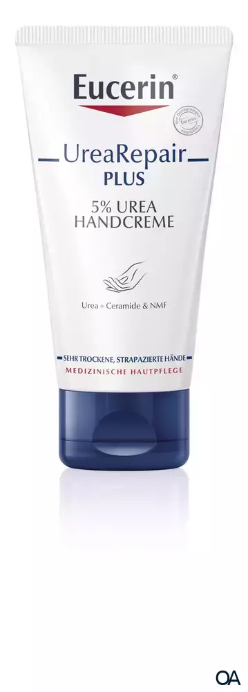 Die Eucerin UreaRepair PLUS Handcreme 5% enthält den einzigartigen, hautverwandten Repair-PLUS-Komplex: Urea und weitere natürliche Feuchthaltefaktoren (Natural Moisturing Factor = NMF) spenden und binden intensiv Feuchtigkeit und sorgen so für einen gesunden Feuchtigkeitsgehalt der Haut. Zusätzlich stärken Ceramide die physiologische Hautbarriere, damit die Feuchtigkeit nicht entweichen kann.