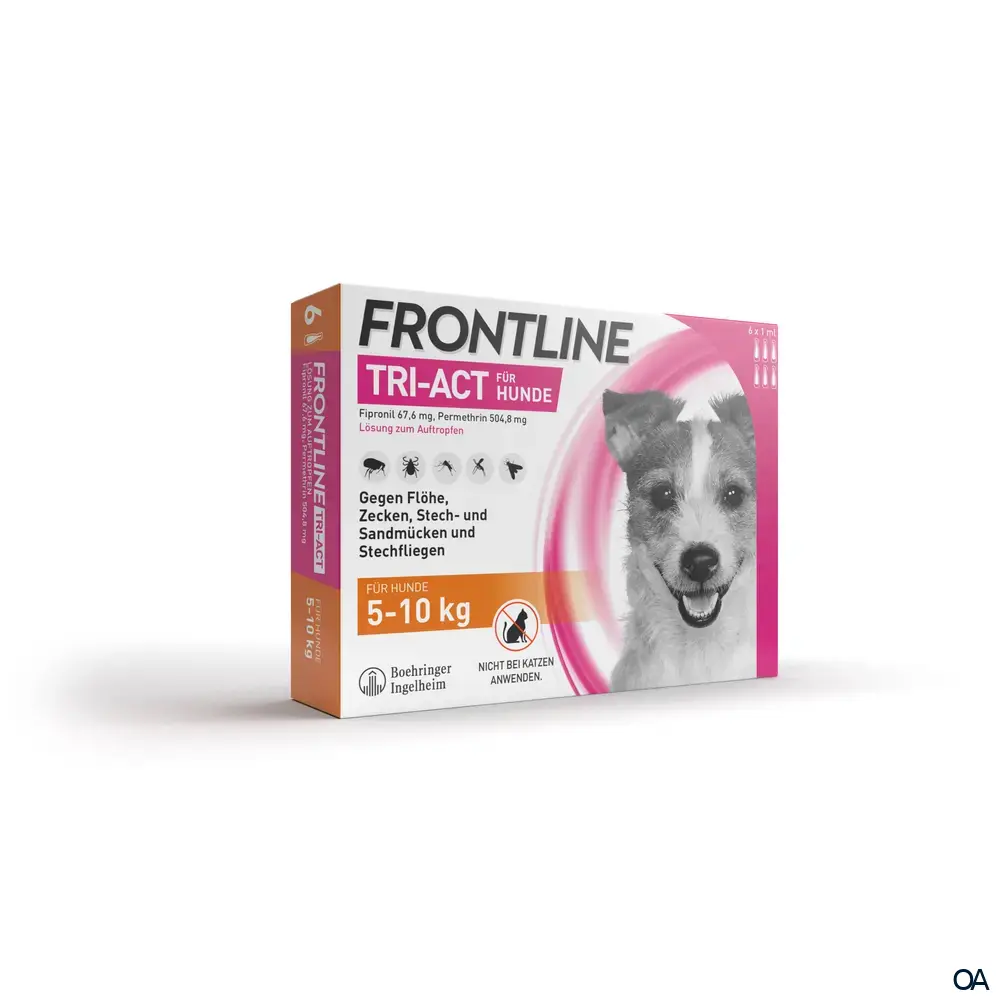 Frontline TRI-ACT® ist ein Tierarzneimittel zur Behandlung und Vorbeugung eines Floh- und/oder Zeckenbefalls, wenn gleichzeitig eine repellierende Wirkung (Verhinderung der Blutaufnahme) gegen Sandmücken, Stechfliegen und/oder Stechmücken angezeigt ist.