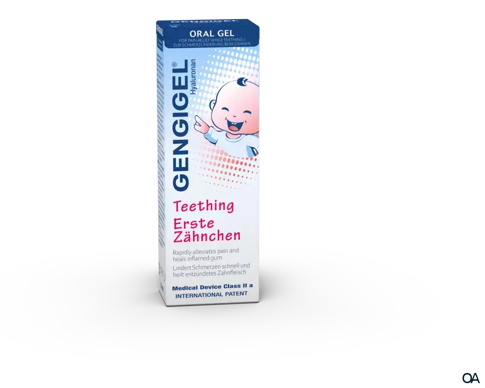 Gengigel® Erste Zähnchen Gel heilt das Zahnfleisch Ihres Kindes rasch und effektiv, wenn Schmerzen und Schwellungen beim Zahndurchbruch auftreten.Gengigel® Erste Zähnchen ist ein Gel zur oralen Applikation und besteht aus einer innovativen, patentierten mukoadhäsiven polymeren Matrix-Substanz, die über einen längeren Zeitraum an Zähnen und Zahnfleisch haften bleibt und einen unsichtbaren, flexiblen, starken Schutzfilm bildet, der eine effektive protektive Wirkung hat.
