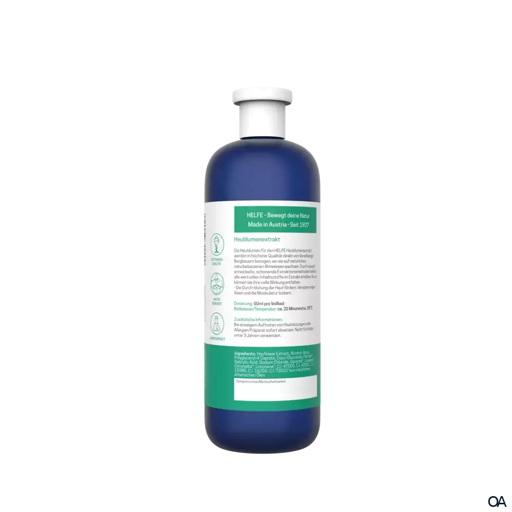 Die Heublumen für das HELFE Heublumenextrakt werden in höchster Qualität direkt von Vorarlberger Bergbauern bezogen, wo sie auf natürlichen, naturbelassenen Almwiesen wachsen. Durch speziell entwickelte, schonende Extraktionsmethoden bleiben alle wertvollen Inhaltsstoffe im Extrakt erhalten: Nur so können sie ihre volle Wirkung entfalten - nämlich die Durchblutung der Haut fördern, Verspannungen lösen und die Muskulatur lockern.