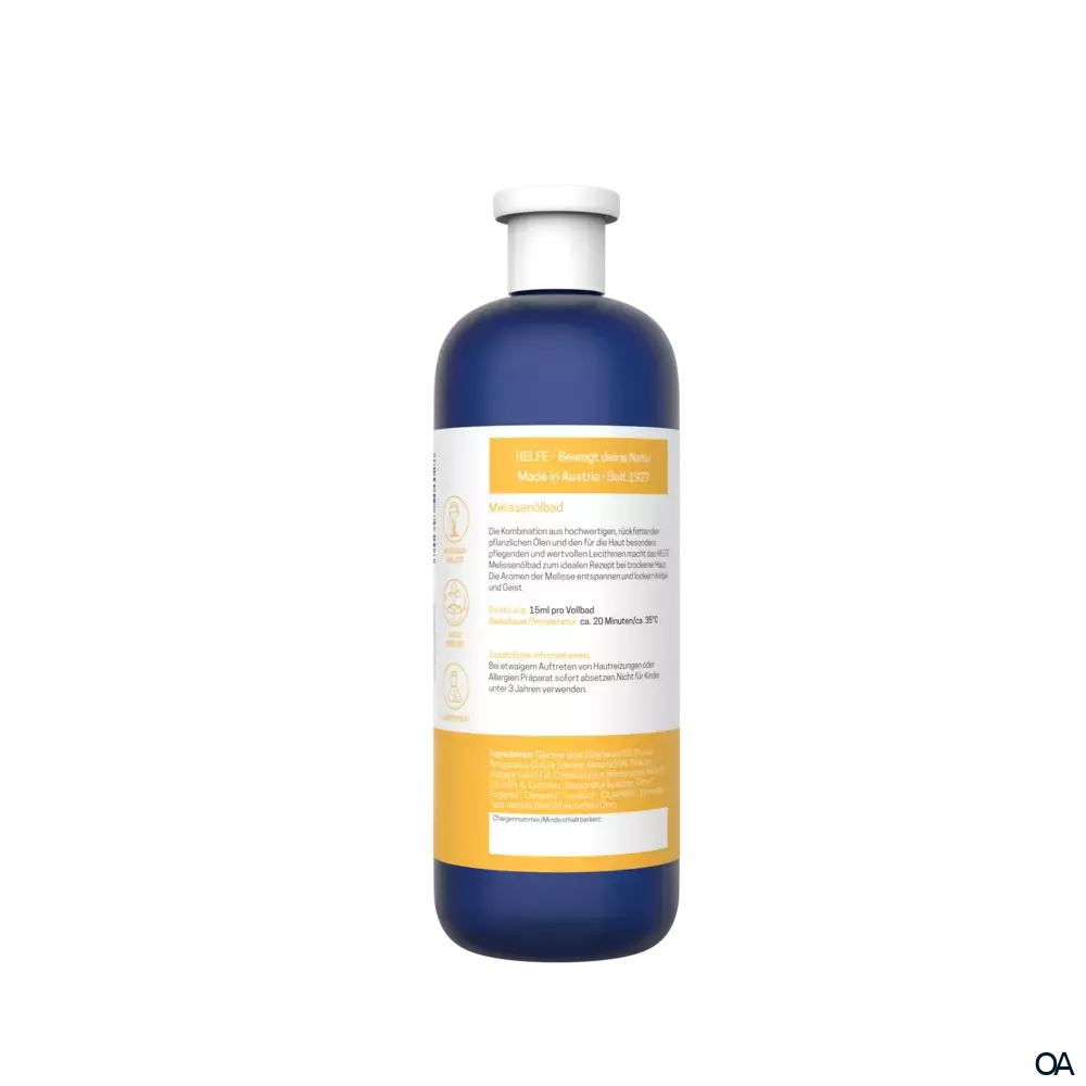 Das HELFE Melissenölbad ist ein Badezusatz. Spendet eine reichhaltige Pflege für sensible Haut. Ideal für eine pflegendes und entspannendes Bad.