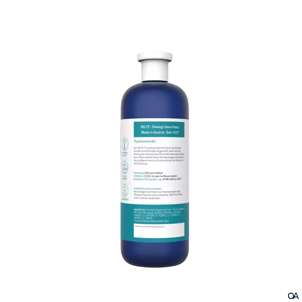 Der HELFE Thymianextrakt wird durch schonende Extraktionsmethoden hergestellt, damit sich die Wirkung der ätherischen Öle im Bad maximal entfalten kann. Diese werden durch die Atemwege und über die Haut aufgenommen und unterstützen den Körper bei der Genesung.