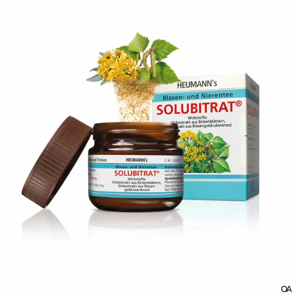 Heumanns Blasen- und Nierentee Solubitrat® ist ein pflanzliches Arzneimittel zur Durchspülung bei krampfartigen und entzündlichen Erkrankungen der Harnwege, bei Nierengrieß, zur Vor- und Nachsorgebehandlung bei Harnsteinen.HEUMANN’s Blasen- und Nierentee Solubitrat® ist ein bewährtes, pflanzliches Arzneimittel gegen Blasenentzündung. Der Arzneitee ist rezeptfrei in der Apotheke erhältlich und wirkt nicht nur harntreibend, sondern unterstützt zudem dank der hochkonzentrierten Wirkstoffe aus Goldrute und Birkenblättern den Heilungsprozess.