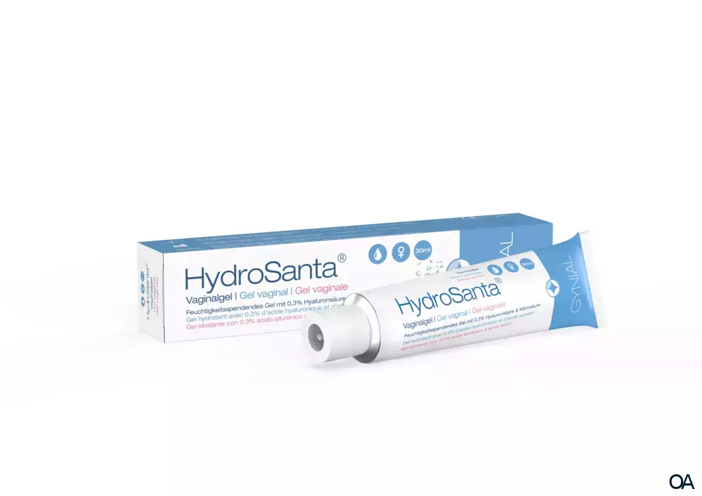 HydroSanta® Vaginalgel ist ein Medizinprodukt zur Befeuchtung der Scheide bei Trockenheit. Das feuchtigkeitsspendende Gel mit 0,3 % Hyaluronsäure und Milchsäure lindert Beschwerden wie Brennen, Juckreiz und Schmerzen beim Geschlechtsverkehr.
