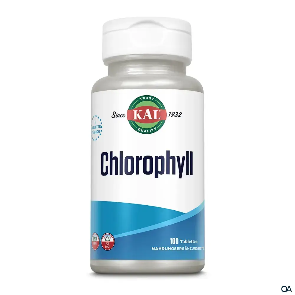 Die KAL Chlorophyll 20 mg Tabletten sind ein Nahrungsergänzungsmittel mit Chlorophyll in Tablettenform. Eine Tablette liefert 20 mg Chlorophyll. Chlorophyll ist unter anderem in Grünkohl oder Spinat enthalten.Die KAL Chlorophyll 20 mg Tabletten sind ein Nahrungsergänzungsmittel mit Chlorophyll in Tablettenform. Eine Tablette liefert 20 mg Chlorophyll. Chlorophyll ist unter anderem in Grünkohl oder Spinat enthalten.