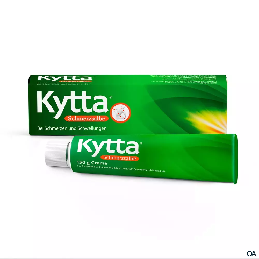 - Was Kytta Schmerzsalbe enthält: Der Wirkstoff ist: Flüssigextrakt aus frischer Beinwellwurzel 100 g enthalten 35 g Flüssigextrakt aus frischer Beinwellwurzel (Symphyti radix recens, Droge-Extrakt-Verhältnis (DEV) 1:2), Auszugsmittel: Ethanol 60 % (v/v).