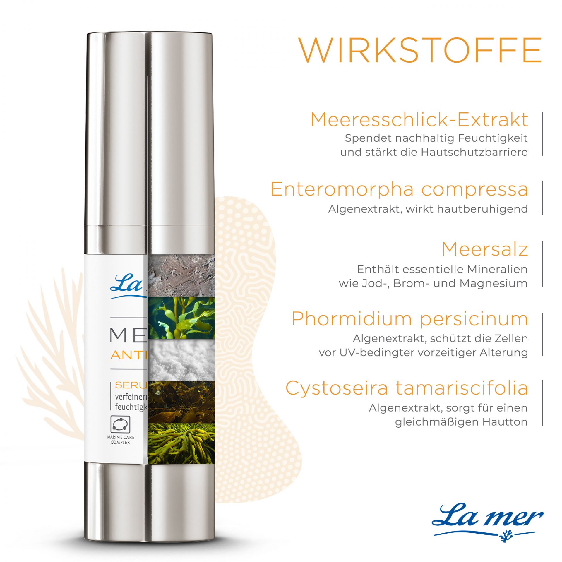 Dieses Anti-Age Serum enthält die kraftvollen Mikroalgen Phormidium persicinum und Cystoseira tamariscifolia, die gemeinsam den Hautalterungsprozess verlangsamen und der Haut ein frisches, vitales Aussehen verleihen.