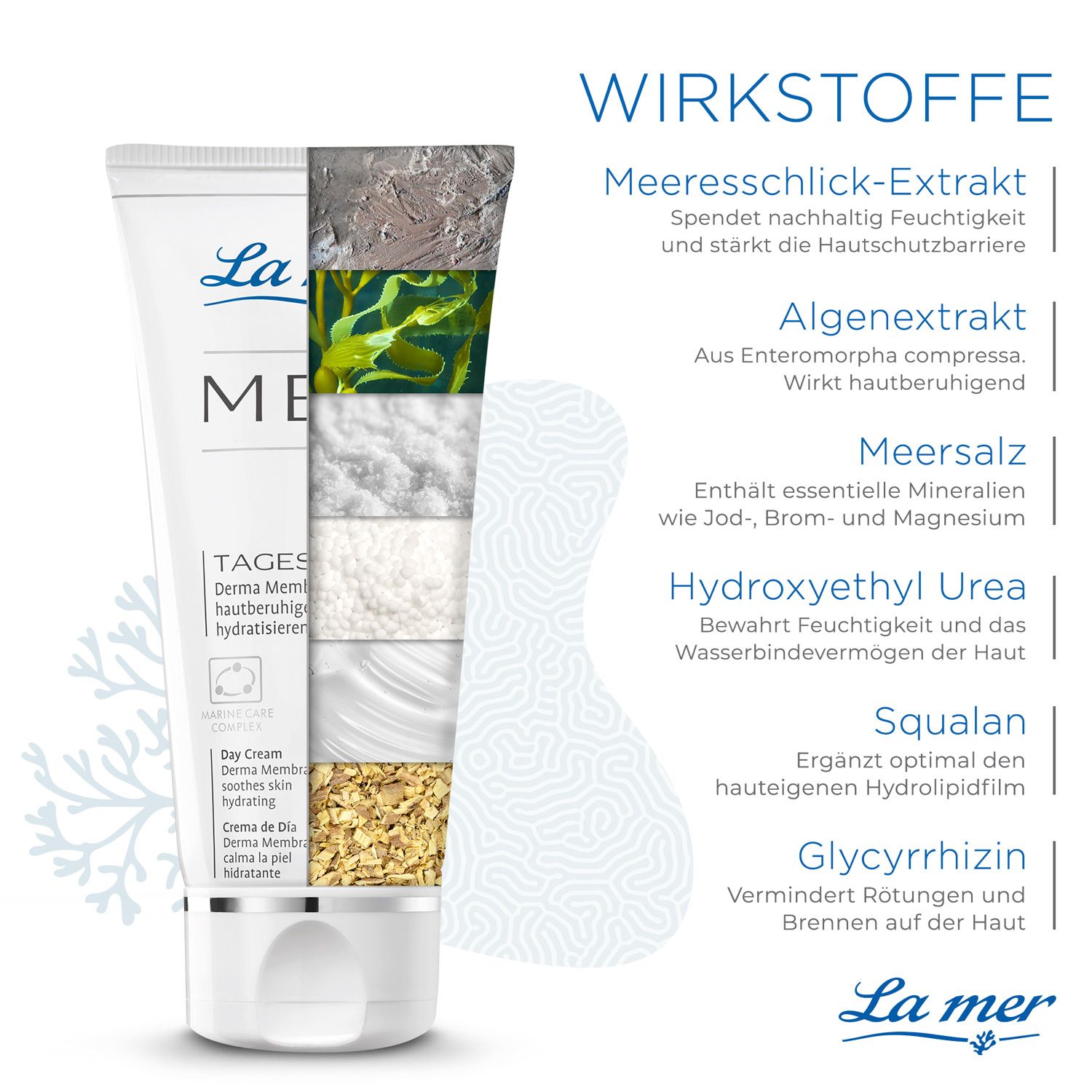 Die Tagescreme pflegt empfindliche und gereizte Haut, spendet intensiv Feuchtigkeit und regeneriert. Spannungsgefühle werden vermindert, und die Haut wird geglättet und beruhigt.
