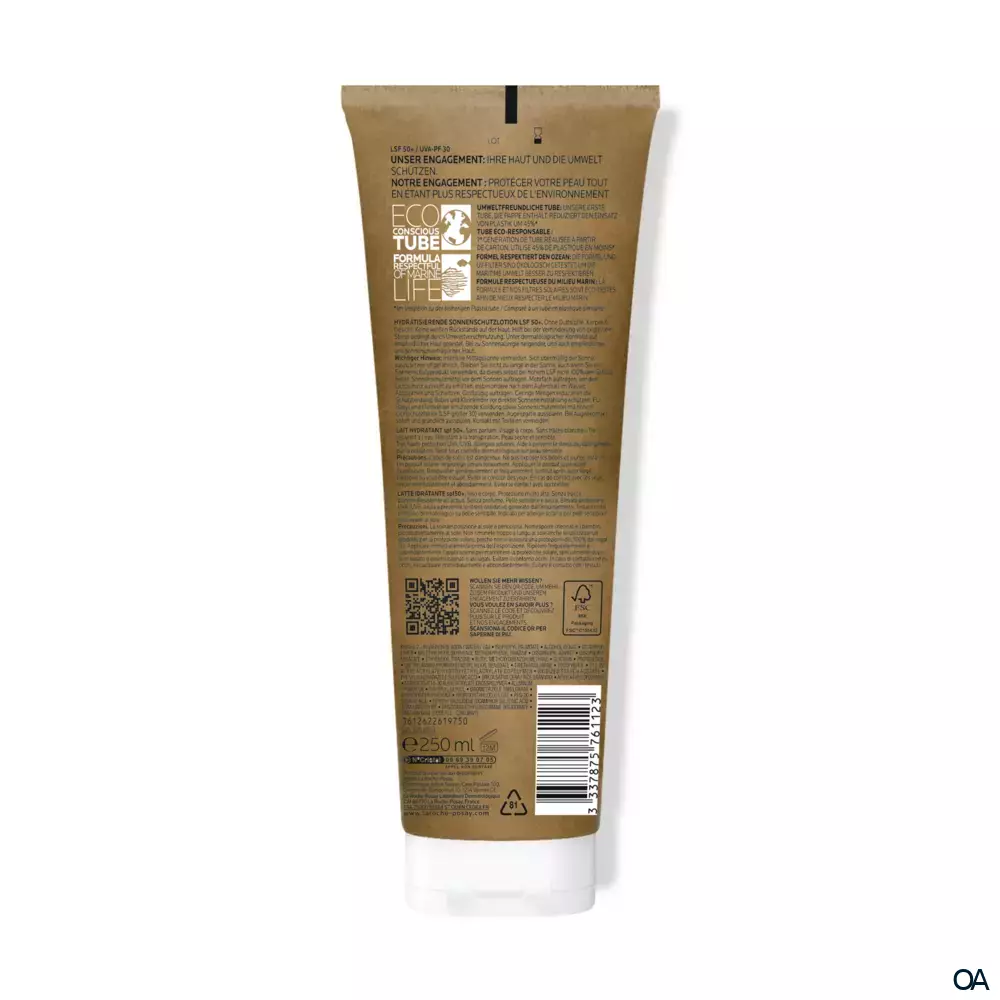 Anthelios Sonnenmilch LSF 50+ in der Eco Tube schützt die Haut zuverlässig vor UV-Strahlen und versorgt sie mit Feuchtigkeit. ANTHELIOS Sonnenmilch LSF 50+ kommt in einer Tube mit Pappe.