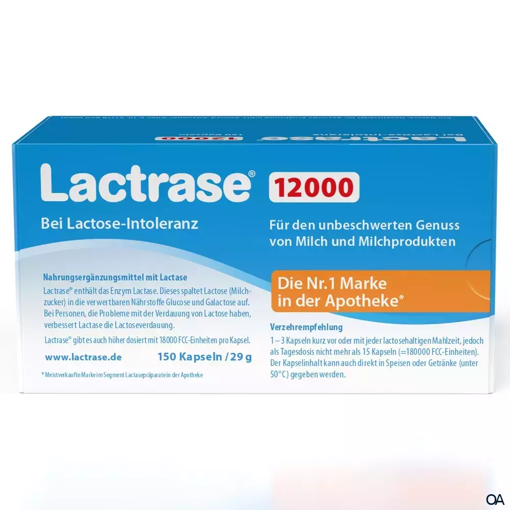 Lactrase® 12000 FCC Kapseln sind ein Nahrungsergänzungsmittel, das die Verdauung von Milchzucker (Laktose) unterstützt. Das enthaltene Enzym Lactase spaltet den Milchzucker in seine Bestandteile Glukose und Galaktose auf.