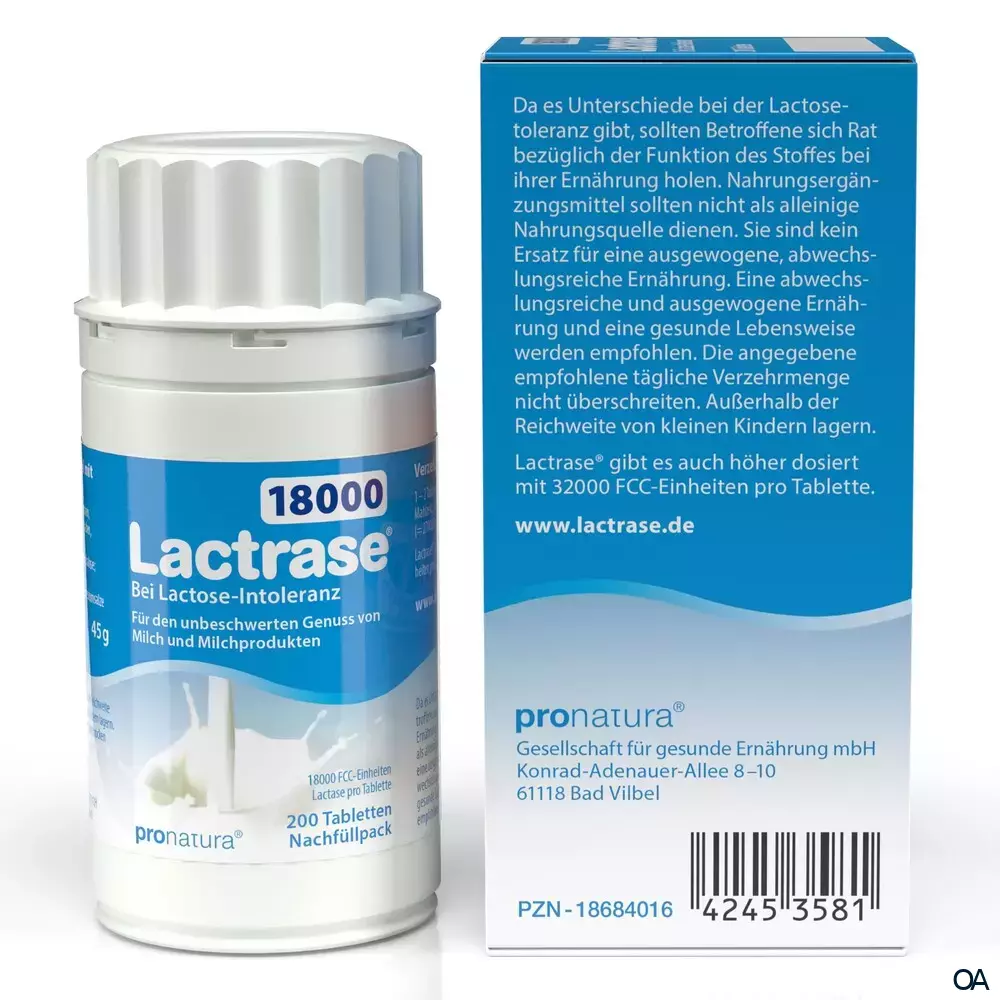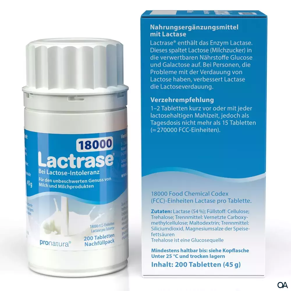Lactrase® 18000 FCC Tabletten sind ein Nahrungsergänzungsmittel, das die Verdauung von Milchzucker (Laktose) unterstützt. Das enthaltene Enzym Lactase spaltet den Milchzucker in seine Bestandteile Glukose und Galaktose auf.