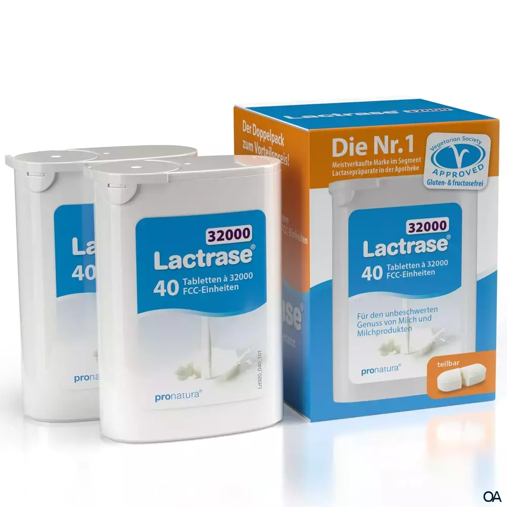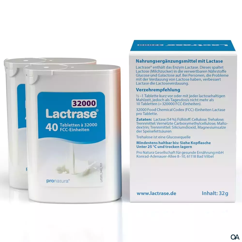 Lactrase® 32000 FCC Tabletten sind ein Nahrungsergänzungsmittel, das die Verdauung von Milchzucker (Laktose) unterstützt. Das enthaltene Enzym Lactase spaltet den Milchzucker in seine Bestandteile Glukose und Galaktose auf.