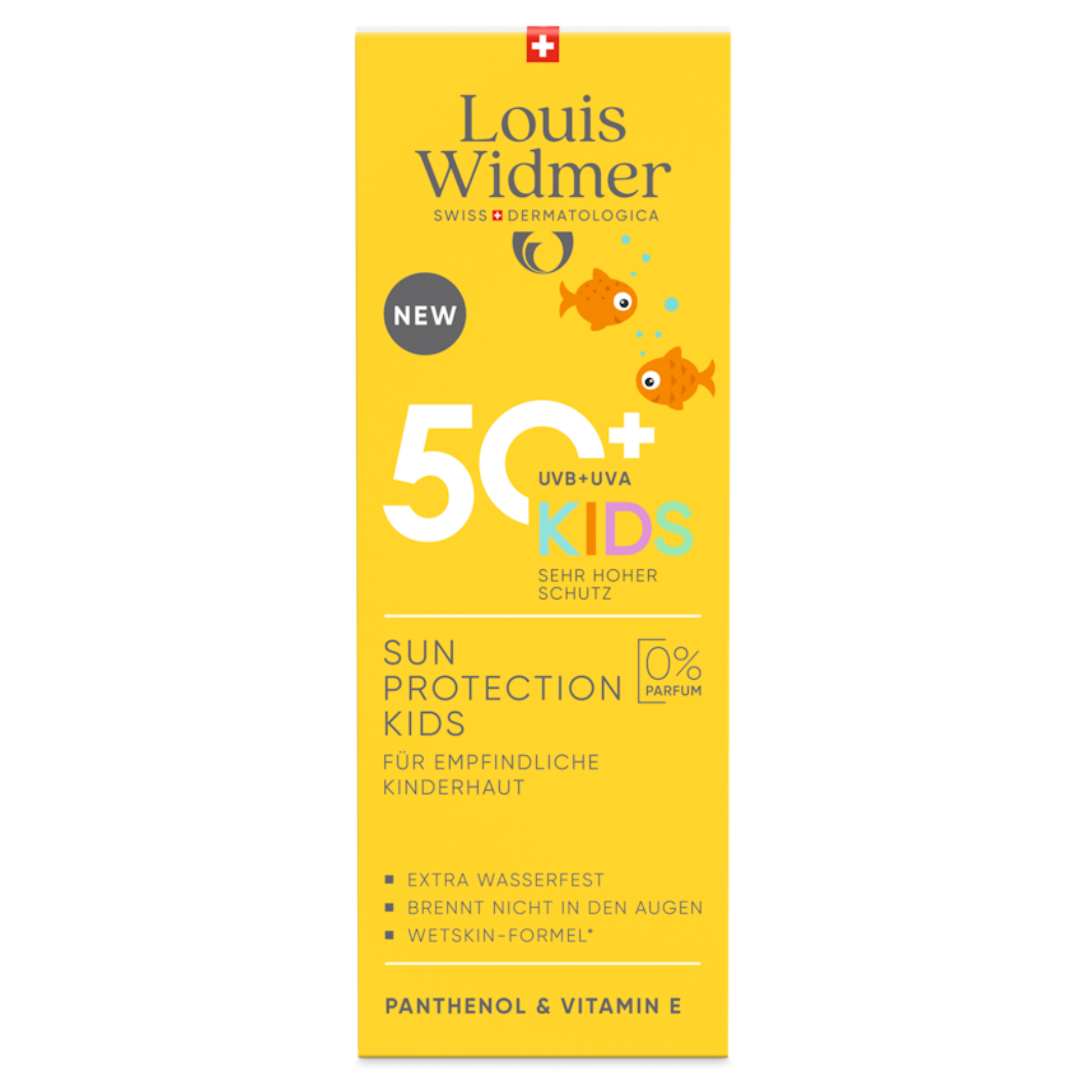 Extra wasserfester Sonnenschutz ab 1 Jahr: Louis Widmer Sun Protection Kids 50+ schützt empfindliche Kinderhaut zuverlässig vor UV-Strahlen – ohne Parfum, zieht schnell ein, kein Augenbrennen.Eigenschaften