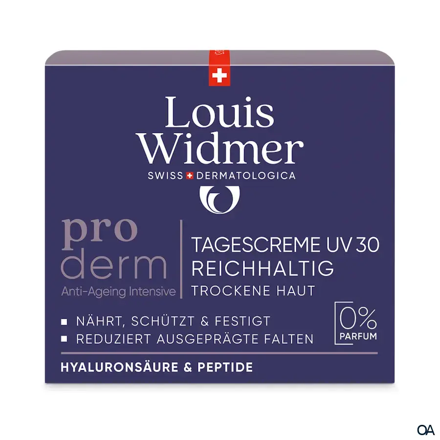 Entdecken Sie die reichhaltige Proderm Tagescreme UV 30 von Louis Widmer. Spendet Feuchtigkeit, schützt vor UV-Strahlen und mildert Falten. Ideal für trockene und reife Haut.Entdecken Sie die reichhaltige Proderm Tagescreme UV 30 von Louis Widmer. Spendet Feuchtigkeit, schützt vor UV-Strahlen und mildert Falten. Ideal für trockene und reife Haut.