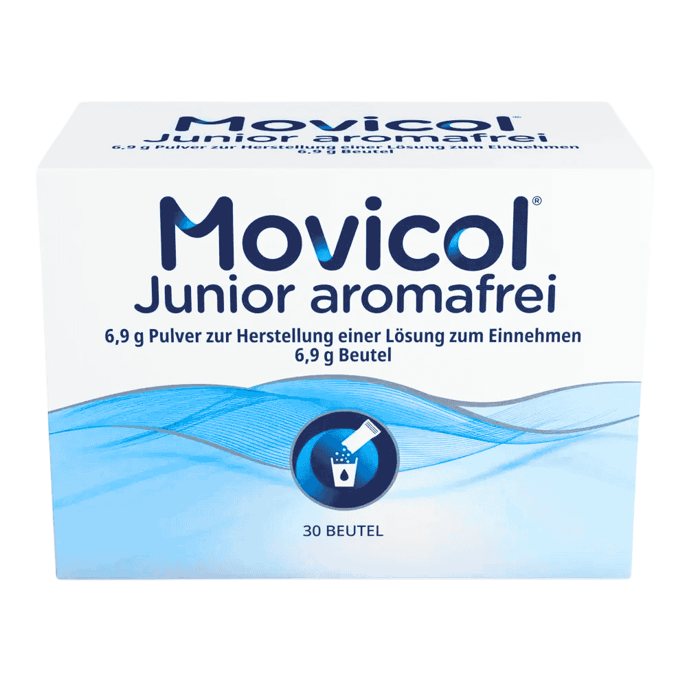 MOVICOL® Junior aromafrei Pulver Stick-Beutel sind ein rezeptfreies Arzneimittel zur Behandlung von chronischer Verstopfung bei Kindern im Alter von 1 bis 11 Jahren und zur Behandlung von einer hartnäckigen Verstopfung mit Kotstauung im Darm ab 5 Jahren.Der Name dieses Arzneimittels ist MOVICOL® Junior aromafrei Pulver Stick-Beutel . Es handelt sich um ein Arzneimittel aus der Gruppe der Abführmittel (Laxanzien) zur Behandlung von chronischer Verstopfung bei Kindern im Alter von 1 bis 11 Jahren und zur Behandlung von einer hartnäckigen Verstopfung mit Kotstauung im Darm, „Koprostase“ genannt, bei Kindern zwischen 5 und 11 Jahren.