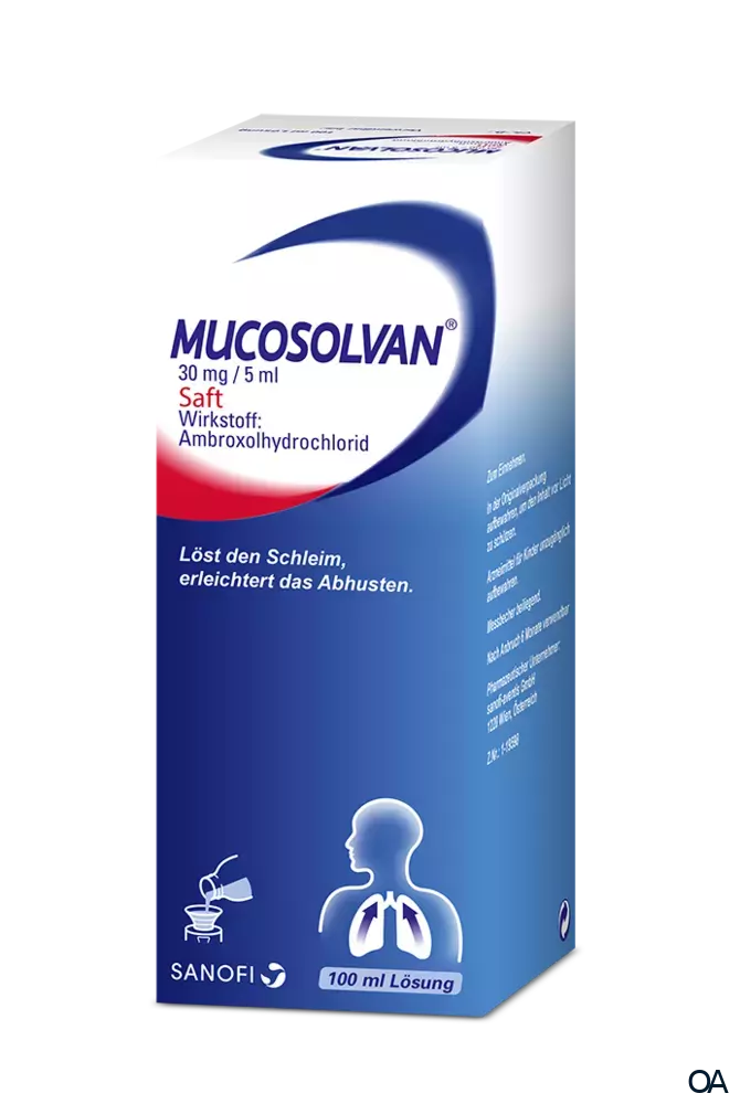 Mucosolvan® Schleimlöser 30 mg / 5 ml Saft ist ein schleimlösendes Arzneimittel, das bei akuten und chronischen Erkrankungen der Bronchien und der Lunge angewendet wird. Es löst zähen Schleim und erleichtert so das Abhusten.Mucosolvan® Schleimlöser 30 mg / 5 ml Saft ist ein schleimlösendes Arzneimittel, das bei akuten und chronischen Erkrankungen der Bronchien und der Lunge angewendet wird. Es löst zähen Schleim und erleichtert so das Abhusten.