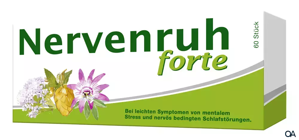 Nervenruh®forte ist ein traditionelles pflanzliches Arzneimittel zur Anwendung bei leichten Symptomen von mentalem Stress und nervös bedingten Schlafstörungen.Starke Nerven durch die 3-fach Kombination Baldrian, Hopfen, Passionsblume. Kein Gewöhnungseffekt, gute Wirksamkeit, leichteres Einschlafen.