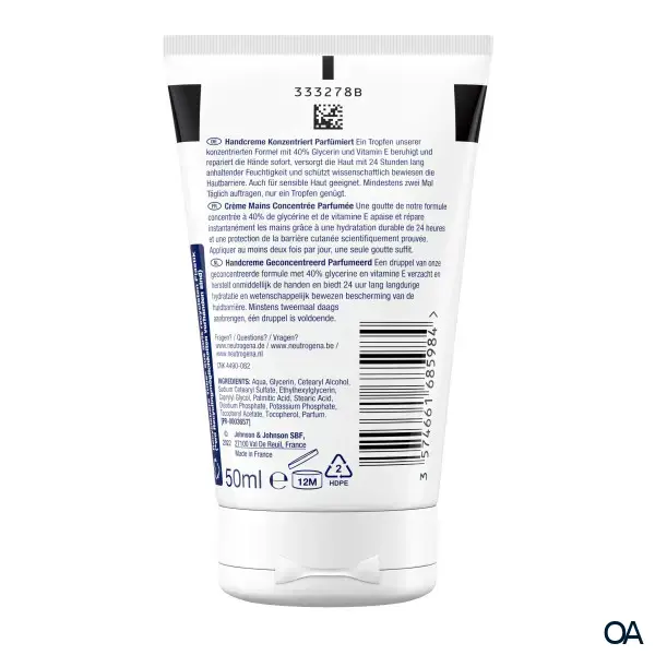 Die Neutrogena Norwegische Formel konzentrierte parfümierte Handcreme ist eine beruhigende Feuchtigkeitscreme bei extrem trockenen Händen mit Glycerin + Vitamin E und versorgt die Haut 24 Stunden lang mit Feuchtigkeit.